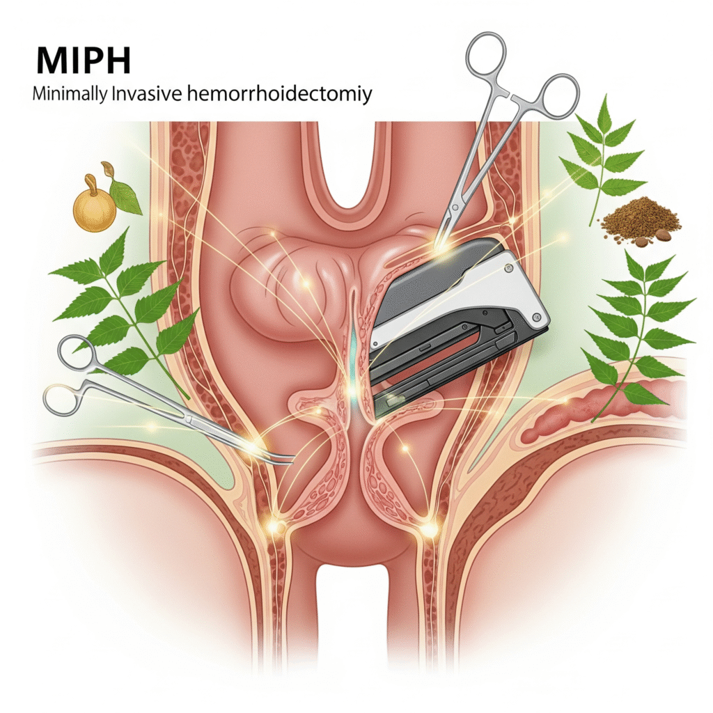 MIPH (Minimally Invasive Procedure for Hemorrhoids), also known as Stapler Hemorrhoidopexy, is a modern surgical treatment for grade 3 and grade 4 hemorrhoids. Unlike conventional open surgery, stapler piles surgery removes and repositions the prolapsed hemorrhoidal tissue using a circular stapling device.